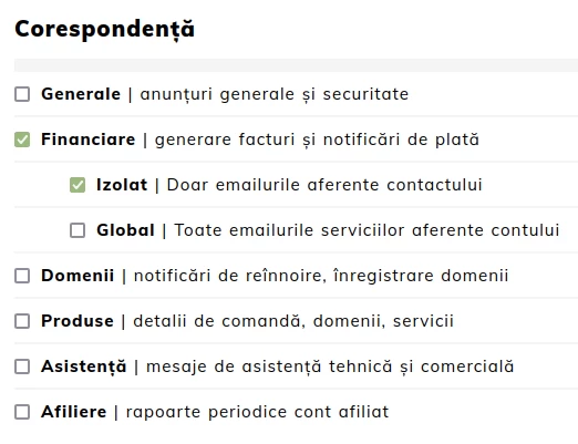 Pavaldžioji paskyra gali būti priskirta vienam arba keliems produktams, todėl atitinkamas klientas bus automatiškai informuotas el. paštu apie kiekvieną komercinį aspektą. Net jei pavaldžioji paskyra yra izoliuota ant vienos paslaugos, paskyros savininkas ir toliau gaus visus su ja susijusius pranešimus ir turės galimybę bet kada atnaujinti išrašytų pro forma sąskaitų duomenis, jei buvo pasirinktas neteisingas kontaktas arba duomenys buvo pakeisti vėliau.