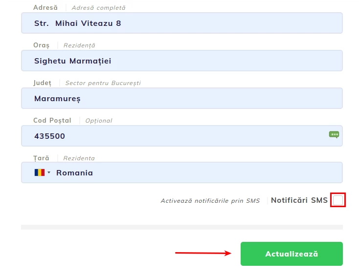 • Puslapio apačioje reikia naršyti, kur reikia pažymėti langelį SMS pranešimai.
