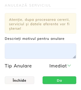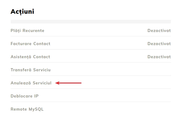 • Kitų veiksmų seka yra pasiekti Veiksmų skydelį dešinėje pusėje. Iš čia reikia paspausti mygtuką Atšaukti paslaugą.