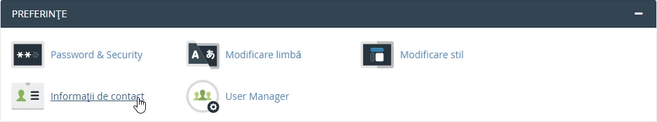 - Norint įjungti pranešimus cPanel paskyroje ir pakeisti kontaktinę informaciją, prisijungsime prie cPanel paskyros ir nueisime į Pageidavimai skyrių, tada paspausime Kontaktinė informacija.
