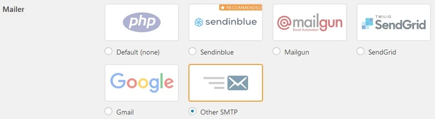 - Skyriuje Mailer pasirinkite variantą Other SMTP.