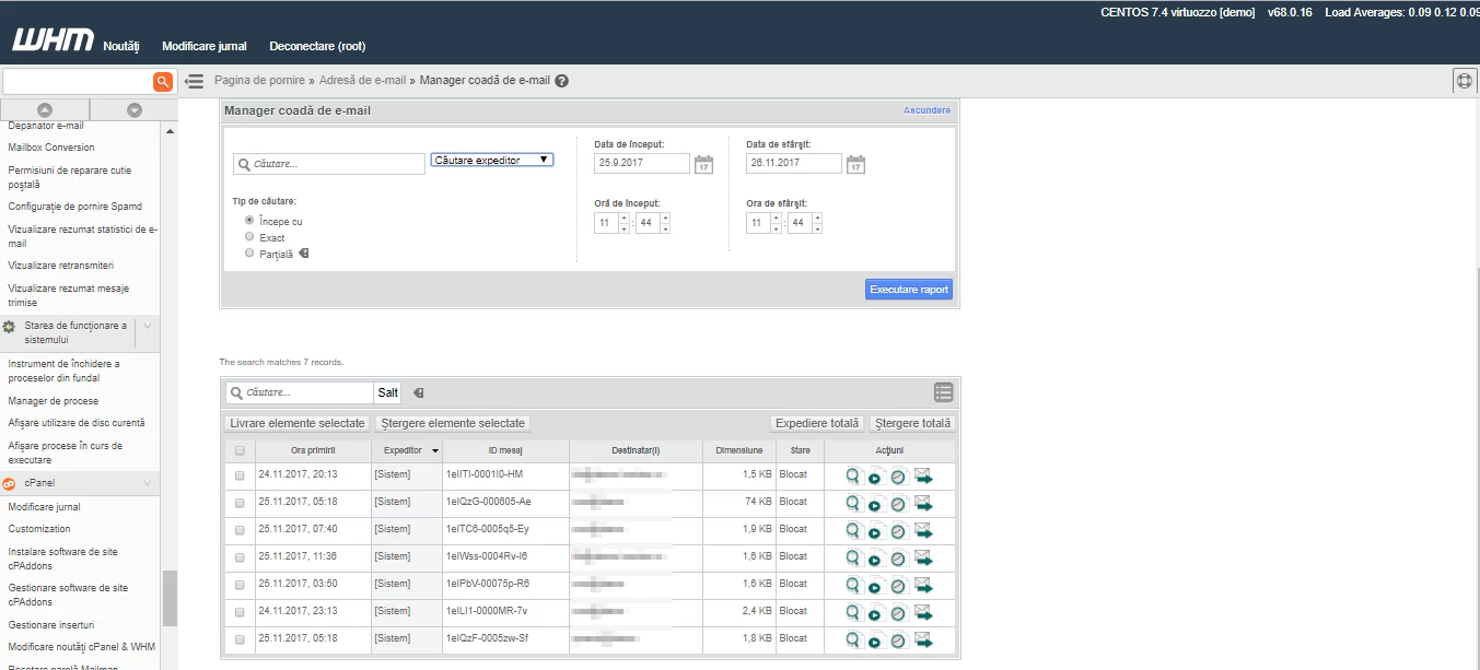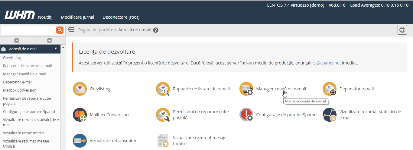 Laukiamų žinučių peržiūra siuntimui arba pašto eilės tvarkyklė WHM administravimo panele