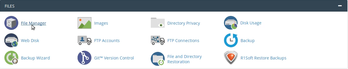 - Pavyzdžiui, cPanel mes paspausime ant Failų tvarkytuvo.